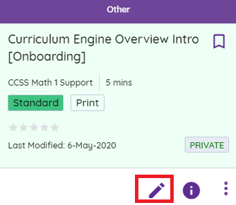 Once you find the learning object you want to edit, click the pencil icon at the bottom right of the learning object card: