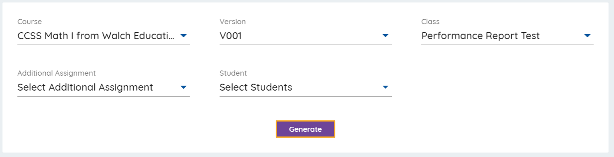 Course: Select the course for which you want to run the report. More than one course can be assigned to a class.