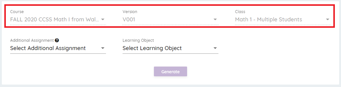 Note: Additional Assignment is optional and you do not need to select that filter criteria if you are running the report for a standard learning object such as an Interactive Practice Problem.